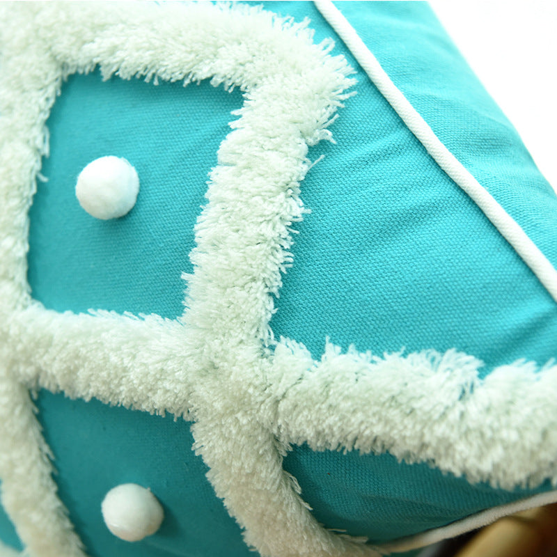 Fügen Sie Ihrem Wohnraum mit dem Kreativen Marokkanischen Kissen mit Bezug – Mirosi einen Hauch von Eleganz und kulturellem Charme hinzu. Dieser elegante Kissenbezug verfügt über ein einzigartiges, getuftetes Design, inspiriert von traditionellen marokkanischen Mustern, und ist ein perfekter Akzent für Sofas, Betten oder Stühle.