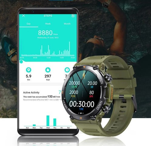 Mit der IP67-Zertifizierung ist sie resistent gegen Regen, Schweiß und Staub und begleitet dich beim Training, bei der Arbeit oder bei Outdoor-Aktivitäten mit voller Sicherheit.