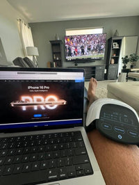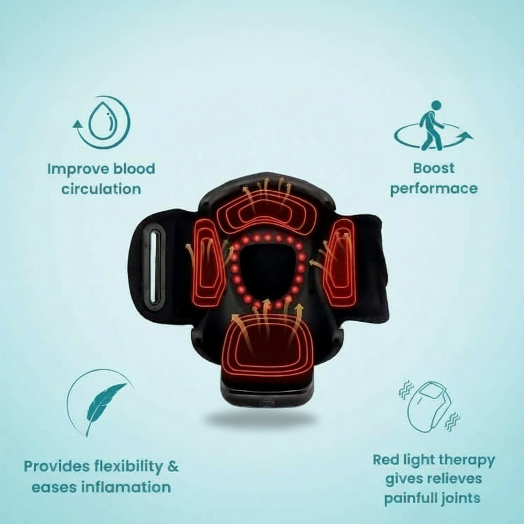 Der KneeFlow Massager ist mit einer fortschrittlichen Triple-Therapie-Technologie entwickelt, die rotes Licht, Wärme und Massage kombiniert, um gezielt das Wohlbefinden des Kniegelenks zu unterstützen.