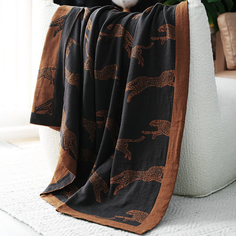 Couverture Tricotée - Plaid avec Imprimé Léopard pour un Confort Accueillant | Esther