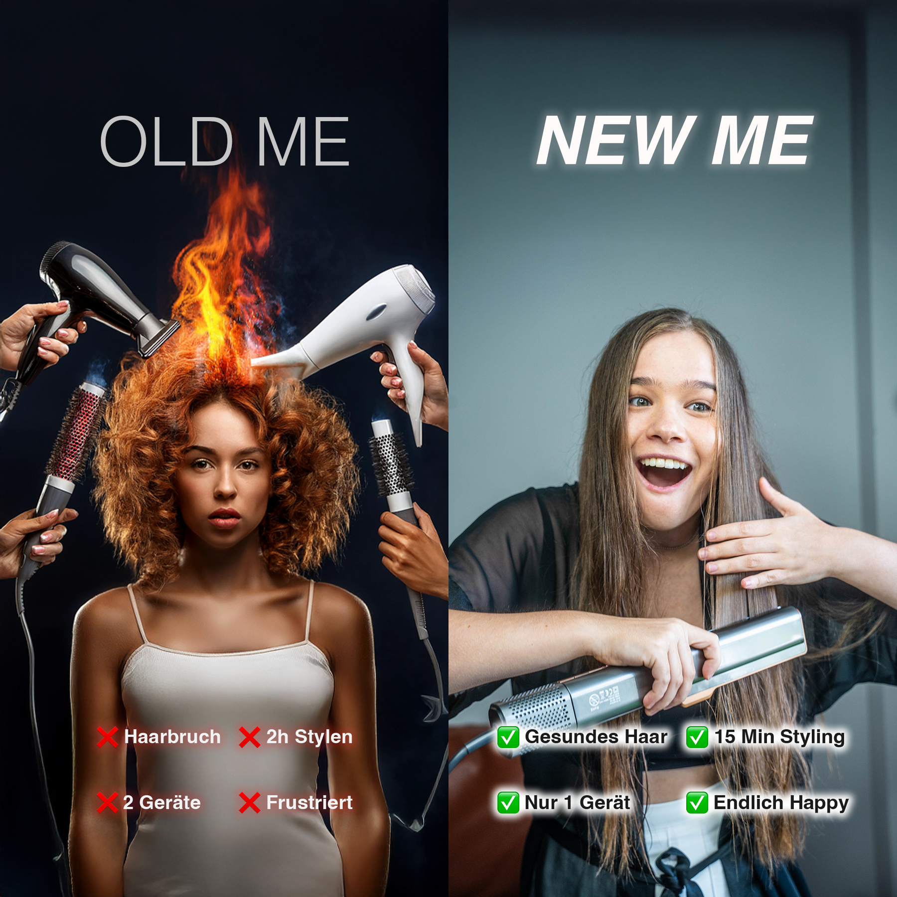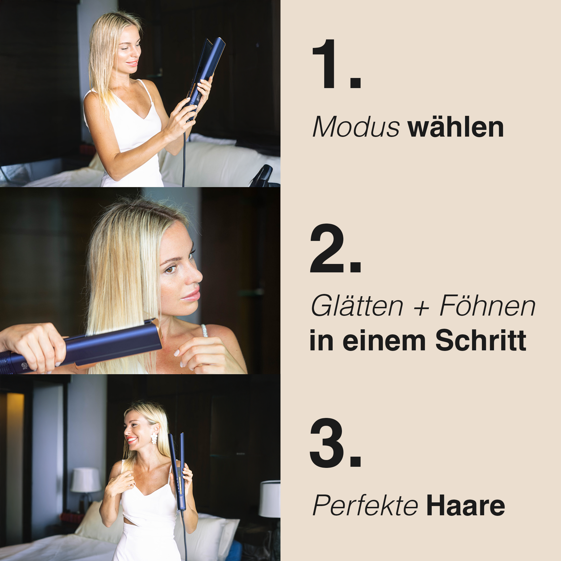La Piastra per Capelli ad Aria GLIMORA® è la combinazione intelligente di una piastra per capelli e un phon. Trasforma i capelli crespi in stili setosi e lisci – in una frazione del tempo. Ideale per lo styling quotidiano senza danneggiare i capelli!