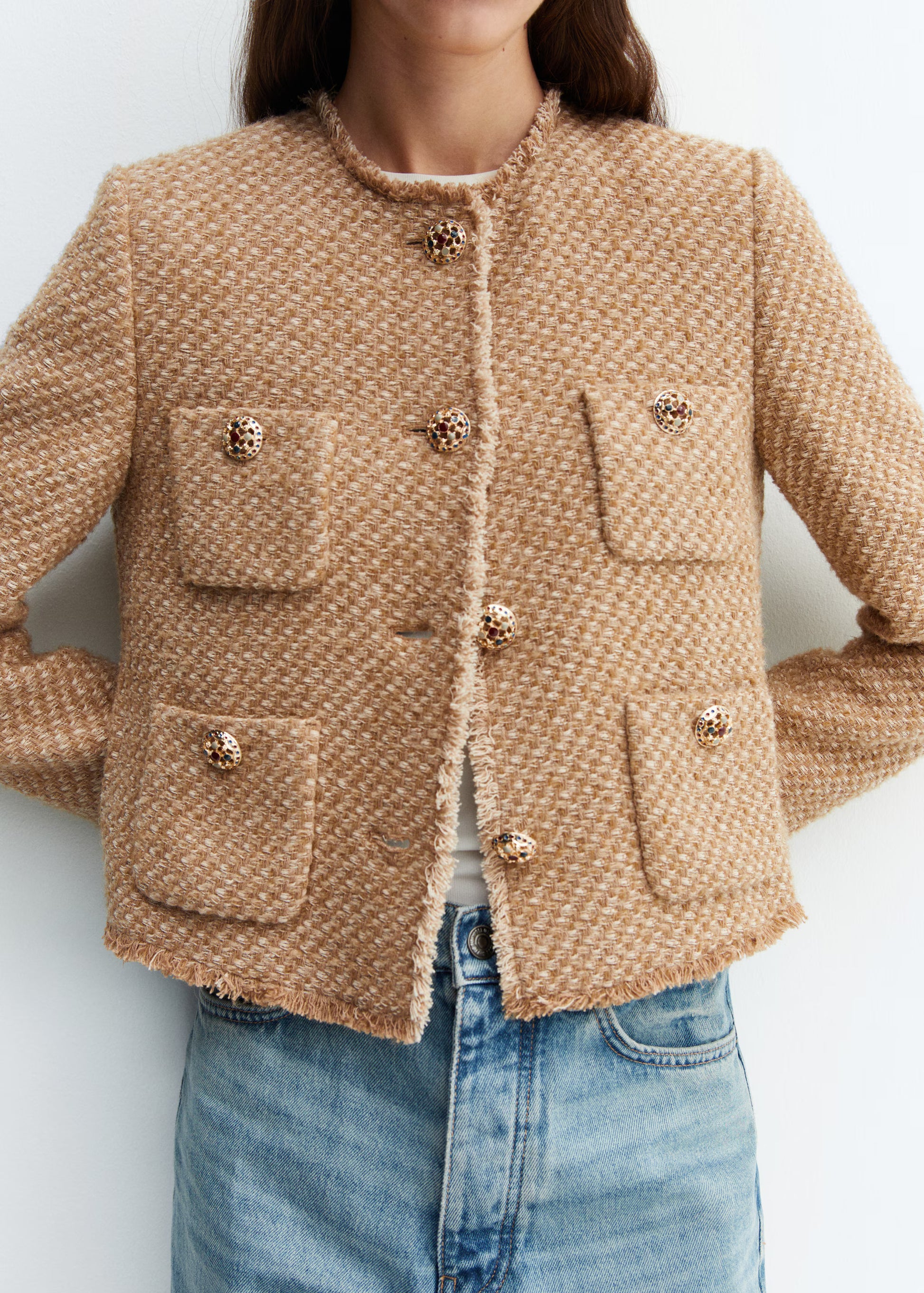 Giacca Tweed Beige Donna | Giacca Elegante per Ufficio e Occasioni Speciali Autunno Inverno 2025